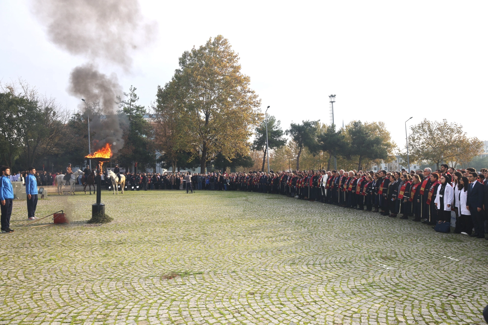 Şehit Astsubay Ömer Halisdemir Meydanı’ndaki Atatürk Anıtı önünde yapılan törene yüzlerce akademik ve idari personel ile çok sayıda öğrenci katıldı.