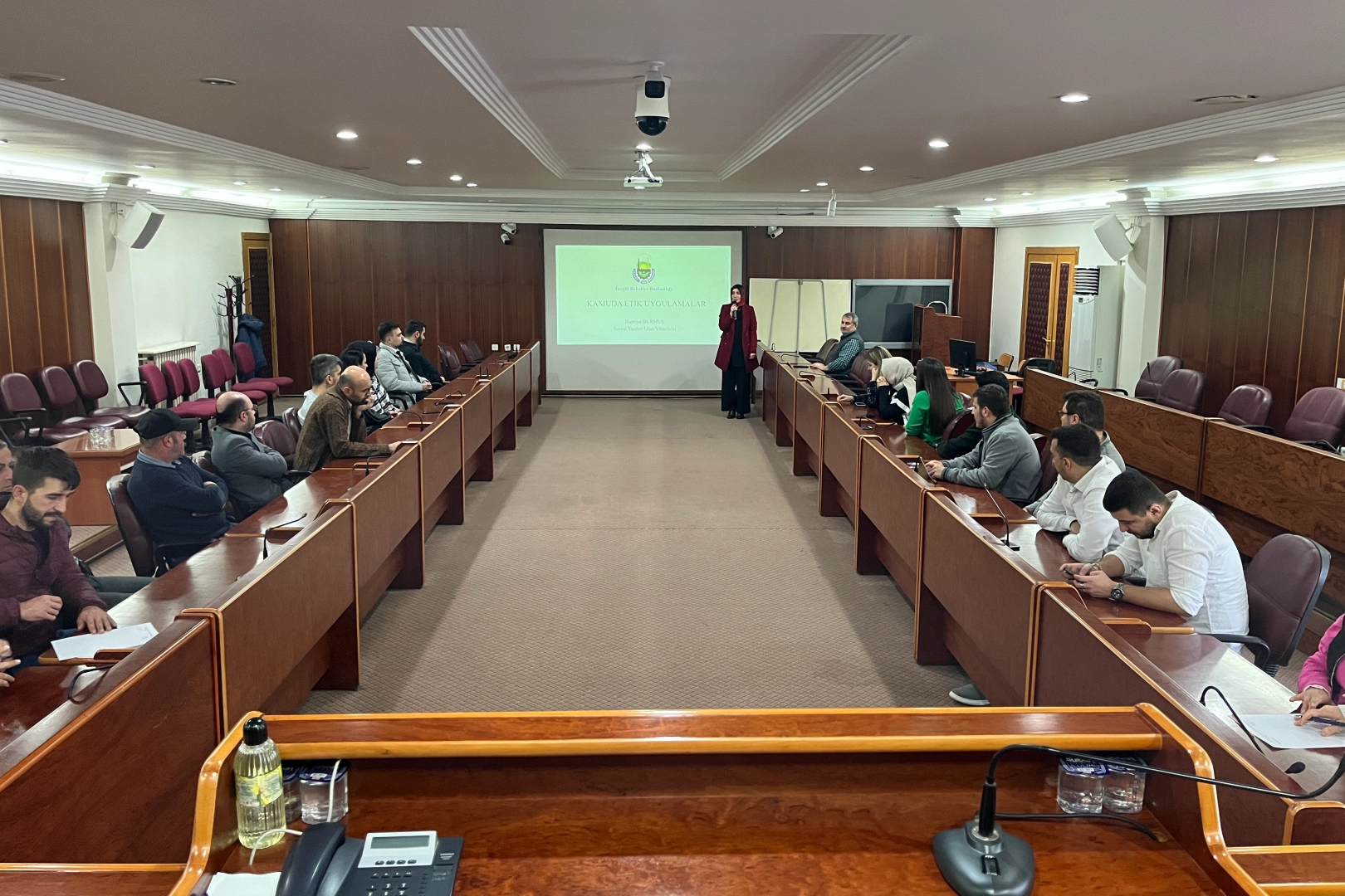 İnegöl Belediyesi Sosyal Yardım İşler Müdürlüğü Yöneticisi Hayriye Durmuş tarafından verilen eğitimde, kamu hizmetlerinde etik kuralları konusunda bilgiler verilerek personelde farkındalık oluşturulması amaçlandı. Eğitim öncesinde personele yönelik konuşan İnsan Kaynakları ve Eğitim Müdürü Osman Kalkan şöyle konuştu: “İnegöl Belediyesi olarak kıymetli Belediye Başkanımız Alper Taban Bey’in önümüze koyduğu vizyon gereğince insan kaynağımızı kurumumuzun en önemli değeri olarak görüyoruz. Bu doğrultuda insan kaynağımızı sürekli iyileştirme ve geliştirme gayreti içerisindeyiz. Bu amaçla bugünkü eğitimimizde de yine önemli bir konu başlığı ile personelimizin karşısına çıktık. Her konuda olduğu gibi etik ilke ve davranışlar bakımından da kurum kültürümüzü daha da geliştirmeyi hedefliyoruz. Bu anlamda da mer’i mevzuatımız ile örtüşen, genel kabul görmüş toplumsal değerlerimizi referans alan, inanç ve itikat sistemimiz ile harmanlanmış etik anlayışın her çalışanımızın bilgi, beceri, tutum ve davranışlarında hayat bulmasını amaçlıyoruz.”