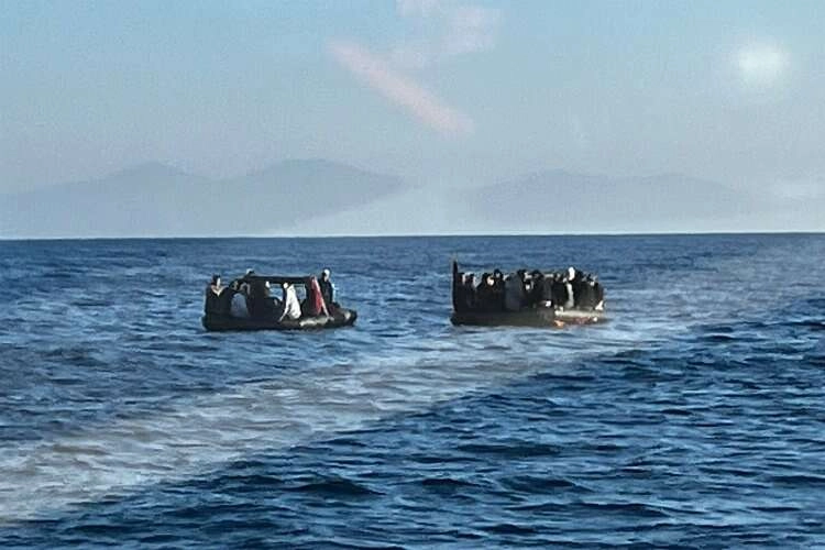 Aydın'ın Kuşadası ilçesi açıklarında 7 çocuğun da olduğu 14 düzensiz göçmenin lastik bot içerisinde olduğu bilgisi üzerine görevlendirilen Sahil Güvenlik Botları (TCSG-24, KB-108), Yunanistan unsurlarınca Türk Karasularına geri itilen göçmenleri kurtardı.