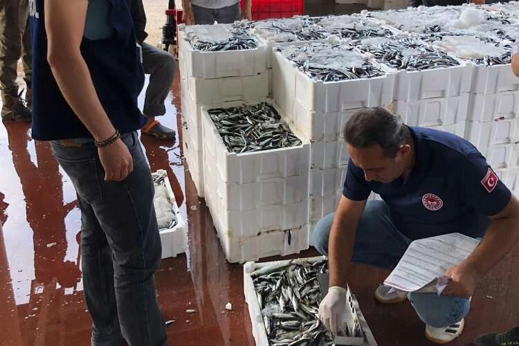 BURSA (İGFA) - Bursa İl Tarım ve Orman Müdürlüğü'ne bağlı Su Ürünleri Kontrol ekibi, Balık Hali'ne gece yapılan kontrollerde avlanabilir asgari boydan küçük 119 kasa istavrit balığına el koydu.