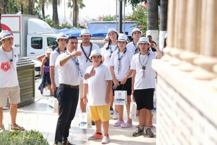 MUĞLA (İGFA) - Çanakkaleli izcilerin Bodrum ziyaretinde izcilerle sohbet eden Belediye Başkanı Ahmet Aras, derneğin çalışmaları ve Bodrum kampı hakkında ekip lideri Hüseyin Çoban’dan bilgiler aldı.