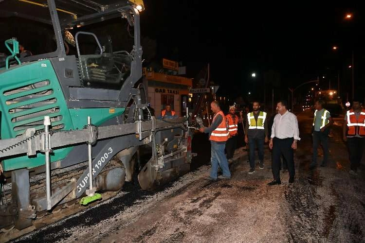 “BELEDİYEMİZ 24 SAAT HİZMETTE” Balıkesir Büyükşehir Belediye Başkanı Yücel Yılmaz gecenin ilerleyen saatlerinde çalışmaları yerinde inceledi. Perşembeyi Cumaya bağlayan gece yolun trafiğe açılacağını belirten Başkan Yılmaz, “Ekiplerimiz Gar Meydanı’nda hummalı bir çalışma yürütüyor. Planladığımız gibi gece boyunca trafiği belirli bir süre kapatıp çalışmalarımızı sürdürüyoruz. Bir yandan asfalt atılmış yere şerit çekilmişken diğer yandan da trimer kazısı ve asfalt yenileme, yağmur suyu hatlarının organizasyonu yapılıyor. Balıkesir’imiz daha güzel olsun diye belediyemiz 24 saat hizmette” dedi.