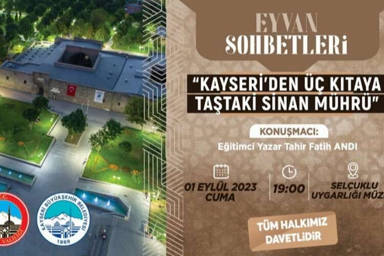 Eyvan Sohbetleri’nde bu kez katılımcılarına Mimar Sinan’ı anlatacak olan konuşmacı Eğitimci Yazar Tahir Fatih Andı, “Kayseri’den Üç Kıtaya Taştaki Sinan Mührü” başlıklı konu ile ünlü mimarın hayatına ve eserlerine dair bilgiler paylaşacak.