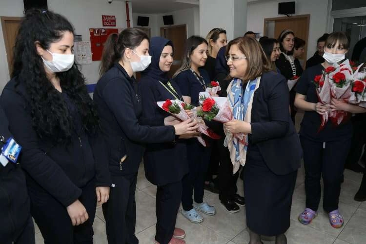 GAZİANTEP (İGFA) - 6 Şubat’ta merkez üssü Kahramanmaraş’ta meydana gelen iki depremin ardından hemşirelerin 14 Mart Tıp Bayramını kutlamak için Başkan Fatma Şahin, İnayet Topçuoğlu Hastanesi'ne gitti.