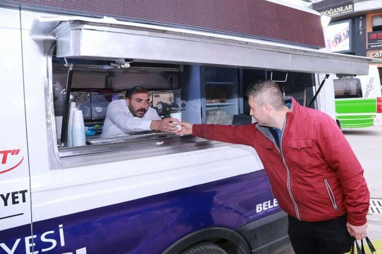 KOCAELİ (İGFA) - İzmit Belediyesi, Yeşilova Mahallesi’nde sabahın erken saatlerinde işe gitmek için servis ve otobüs bekleyen emekçilere ikramlarda bulundu.