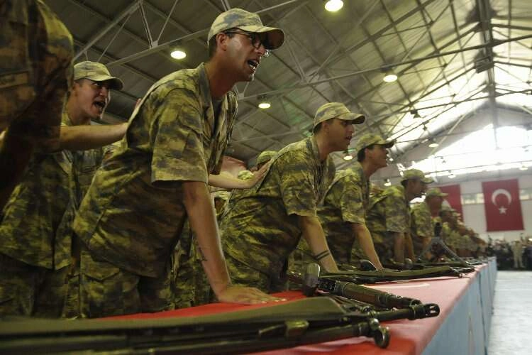 KÜTAHYA (İGFA) - 2023’e 2A tertip 871 asker ve 391. Dönem 166 yedek astsubay, sancağın tanıtılması, saygı duruşunda bulunulması ve İstiklal Marşı’nın okunmasıyla başlayan törende eğitimlerini tamamlayarak, Türk Bayrağı ve silah üzerine ellerini koyarak yemin etti.