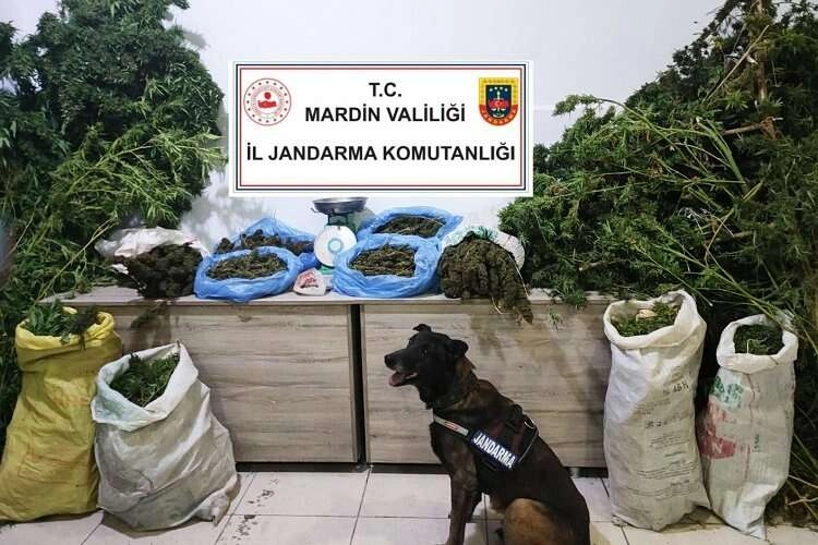 Mardin'in Kızıltepe ilçesinde jandarmanın yaptığı operasyonda manav dükkanında 16 kg esrar ve Hint keneviri ele geçirildi.