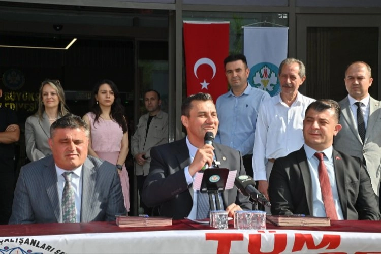 “BAŞKANIMIZ BU KONUDA BİZE ÇOK YARDIMCI OLDU” Tüm Yerel Sen Genel Başkanı Mücahit Dede ise, “Başkanımız bu konuda bize çok yardımcı oldu. Bu anlayışı bizim için çok değerliydi. Çünkü biz mesai arkadaşıyız. Eşit bir şekilde yasal en üst sınırdan sözleşme yapıldı. Bu sözleşmenin hazırlanmasında emeği olan değerli bürokratlarımıza da şube başkanımıza da teşekkür ediyorum. Hepinize hayırlı uğurlu olsun” diye konuştu.