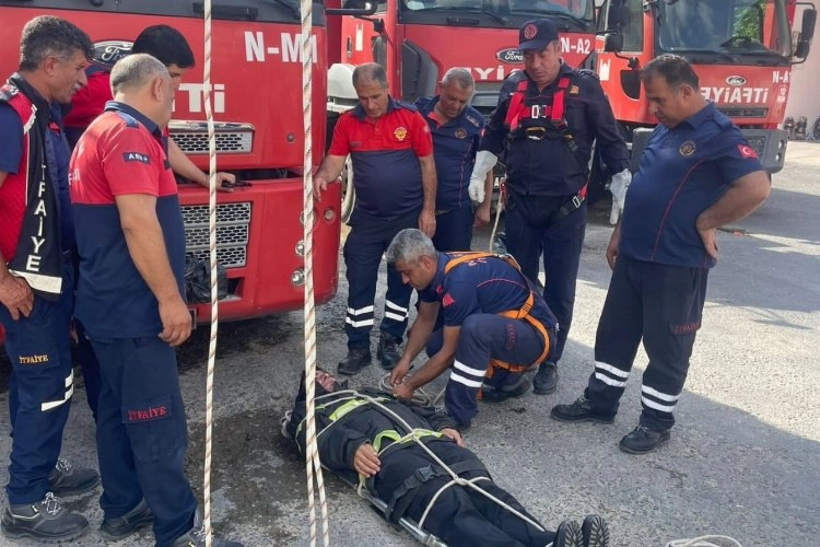 Personellere yangına müdahale, iple yaralı kurtarma, trafik kazasına müdahale konuların hakkında uygulamalı verilen eğitimlerle itfaiye personelleri bilgilendiriliyor.
