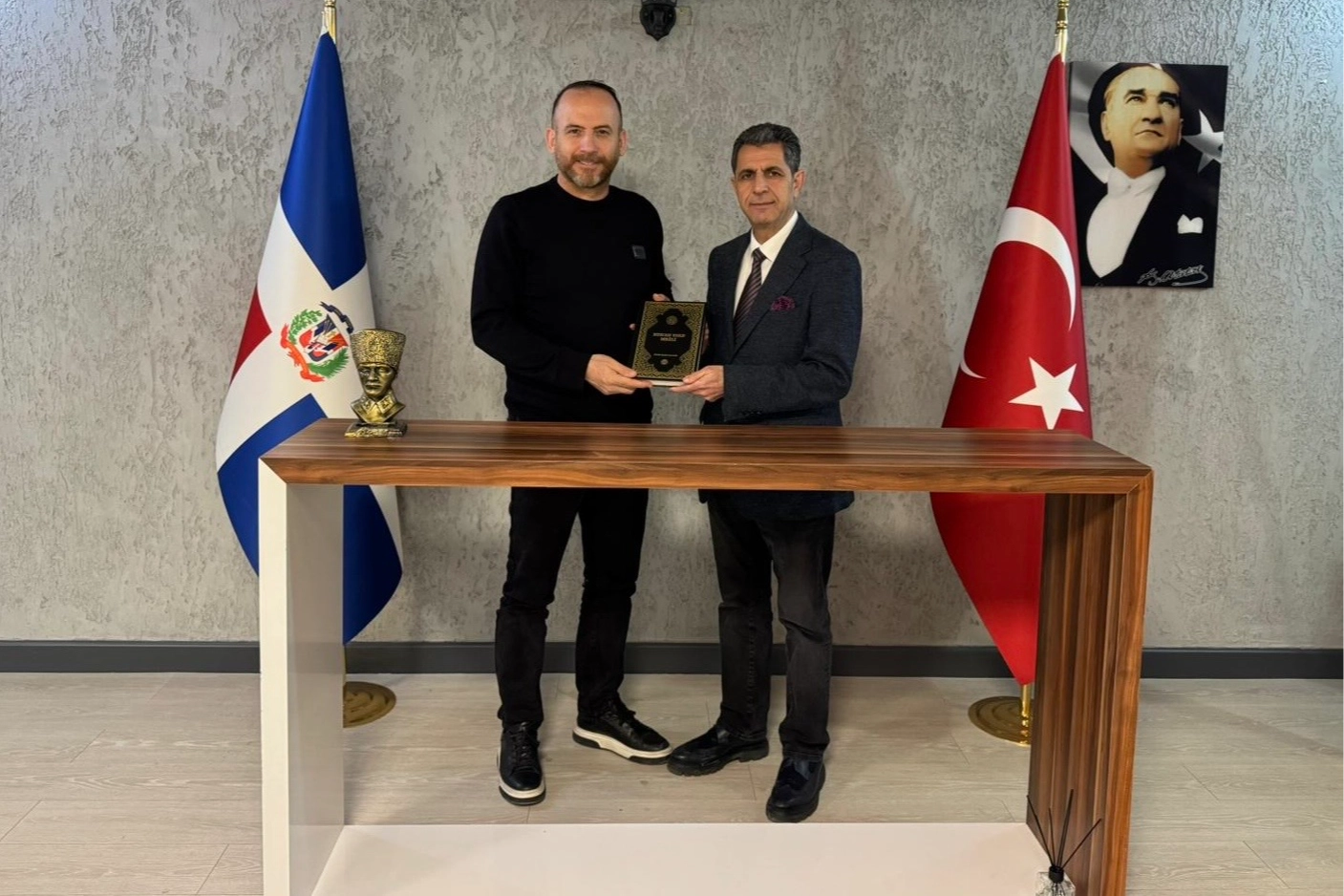 A Gazete Genel Yayın Yönetmeni, Line TV ekranlarında yayımlanan ‘Yerel Vizyon’, ‘İsrafa Karşı’ ve ‘İftarı Beklerken’ programlarının yapımcısı ve sunucusu gazeteci Mehmet Çetinkaya, Dominik Cumhuriyeti Fahri Konsolosu Ömer Aydoğdu’yu makamında ziyaret etti. Samimi bir atmosferde gerçekleşen görüşmede medya ve diplomasi alanındaki çalışmalar başta olmak üzere çeşitli güncel konular üzerine karşılıklı fikir alışverişinde bulunuldu. Samimi ortamda devam eden buluşmada, Türkiye ile uluslararası ilişkiler bağlamında kültürel etkileşimin önemine dikkat çekildi.