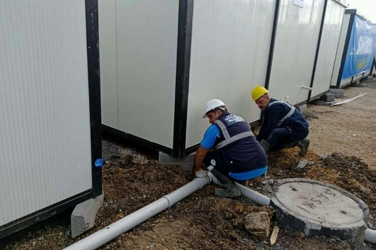 SAKARYA (İGFA) - Sakarya Büyükşehir Belediyesi Su ve Kanalizasyon İdaresi (SASKİ), Hatay’ın Antakya ilçesinde Büyükşehir Belediyesi tarafından kurulumu devam eden Kardeşlik Kenti’nde bulunan konteynerlerin atıksu ve içme suyu bağlantılarını sürdürüyor.