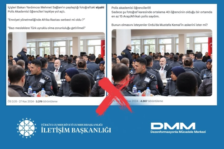 "Uluslararası İkili Anlaşmalar ve Güvenlik İşbirliği Protokolleri kapsamında yabancı uyruklu öğrencilere Polis Akademisi Başkanlığı İç Güvenlik Fakültesi (İGF) Dekanlığında lisans eğitimi, Polis Amirleri Eğitimi Merkezi (PAEM) Müdürlüğünde ise tezsiz yüksek lisans eğitimi verilmektedir" denilen yazılı açıklamada, "İddiaya konu görseldeki yabancı uyruklu öğrenciler, ilgili protokoller kapsamında ülkemizde eğitim almaya gelen polis adaylarıdır. Yabancı uyruklu öğrenciler, eğitim sonunda görevlerini yapmak üzere kendi ülkelerine geri dönmektedir. Kamuoyunu provoke etmeye yönelik dezenformasyonlara itibar etmeyiniz" ifadeleri yer aldı.