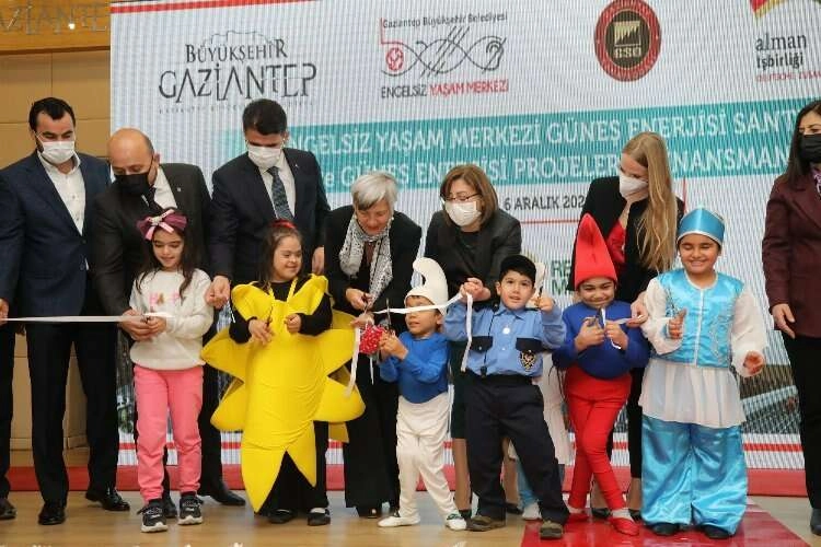 GAZİANTEP (İGFA)- GBB, Gaziantep Sanayi Odası (GSO) ve Alman Uluslararası İş birliği Kurumu’nun (GIZ) Ortak Kalkınma Projesi çerçevesinde Engelsiz Yaşam Merkezi’nin çatısına kurulan 168 kilovat saat kapasiteli güneş enerjisi panellerinin açılışı bir dizi etkinliklerle yapıldı. Tören öncesi GBB Başkanı Fatma Şahin’i, merkezdeki çalışanlar ve öğrenciler Engelliler Haftası dolayısıyla mor balonlarla karşıladı. Şahin, daha sonra engelli piyanist Ufuk Selcen Şığva’nın minik resitaline ortak oldu, birlikte şarkı söyledi. Etkinlikte GIZ Ülke Direktörü Rubeena Esmail, GIZ REMI Projesi Direktörü Melanie Vieker, GSO Yönetim Kurulu Üyesi Başar Küçükparmak ve Şehitkamil Kaymakamı Ömer Kalaylı da bulundu.