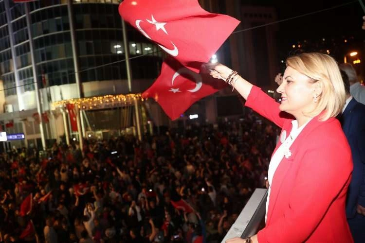 KOCAELİ (İGFA) - 31 Mart Mahalli İdareler Seçimleri sonucunda yeniden İzmit Belediye Başkanı seçilen Fatma Kaplan Hürriyet, belediye meydanında halka hitap etti. Sloganlar ve meşaleler eşliğinde İzmitlilere hitap eden Başkan Hürriyet’e, CHP İzmit İlçe Başkanı Gökhan Ercan eşlik etti.