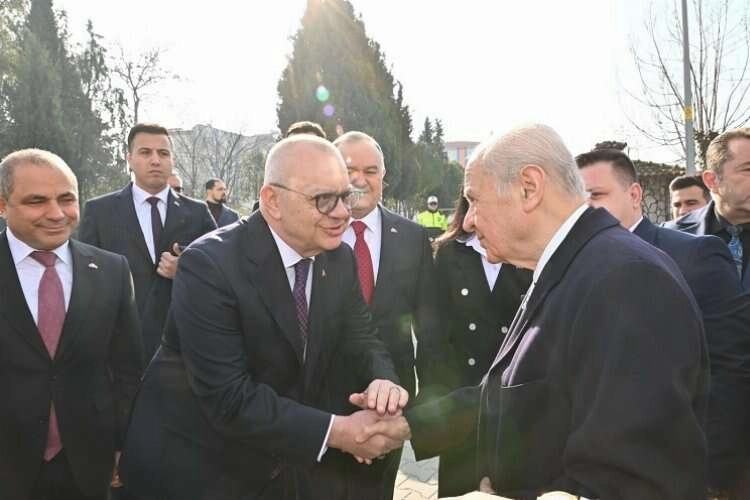 MANİSA (İGFA) - “Cumhur Bizim, Türkiye Hepimizin” açık hava toplantısı kapsamında Manisa’ya gelen MHP Genel Başkanı Devlet Bahçeli, Manisa girişinde Manisa Büyükşehir Belediye Başkanı Cengiz Ergün, MHP Grup Başkanvekili ve Manisa Milletvekili Erkan Akçay, İl Başkanı Cüneyt Tosuner ve teşkilatlar tarafından karşılandı. KAÇEP Başkanı Gonca Aras tarafından çiçek takdim edilen MHP Lideri Bahçeli’yi, ilçe başkanları ve partililer elini öperek karşıladı. MHP Lideri Bahçeli, karşılamanın ardından Double Tree By Hilton Otel’de ağırlandı. Bir süre otelde dinlenen Genel Başkan Bahçeli, kendisiyle fotoğraf çektirmek isteyenleri geri çevirmedi. Açık hava toplantısı öncesinde otelde bir süre Manisa protokolü ile sohbet eden MHP Lideri Bahçeli, daha sonra Cumhuriyet Meydanı’na geçti.