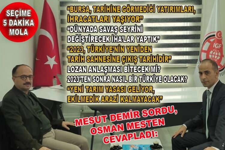 BURSA (İGFA) - Gazeteci yazar Mesut Demir, TBMM Anayasa Komisyonu Üyesi, AK Parti Bursa Milletvekili Av. Osman Mesten ile “Seçime 5 Dakika Mola” söyleşisi gerçekleştirdi.