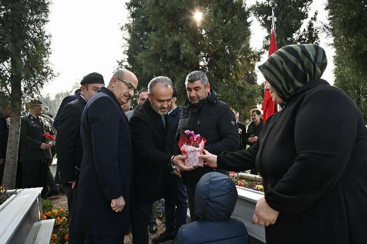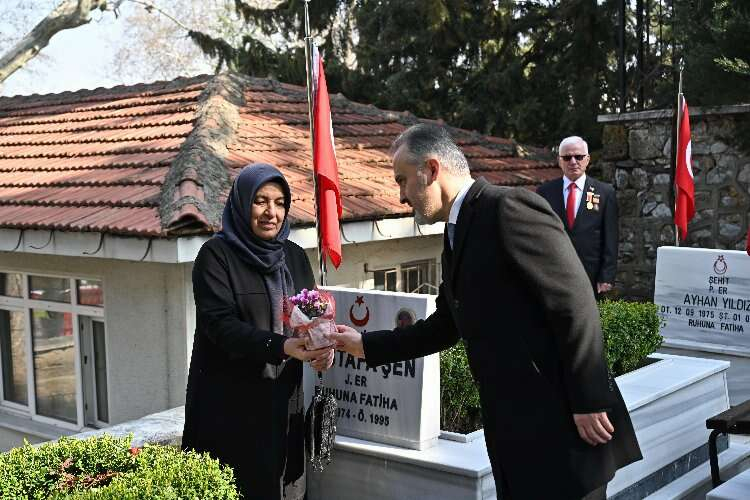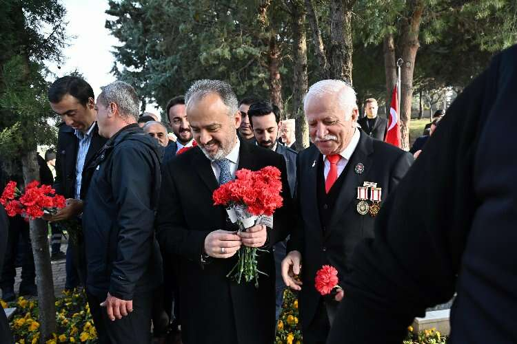 Çanakkale Zaferi’nin 109’uncu yıldönümü tüm yurtta farklı etkinlikle kutlanırken, Bursa’da düzenlenen törenlerde şehit ve gaziler anıldı. Bursa Valiliği tarafından düzenlenen 18 Mart Şehitler Günü programında ilk etkinliklerin adresi Hamitler Şehitliği oldu. Bursa Valisi Mahmut Demirtaş ve Bursa Büyükşehir Belediye Başkanı Alinur Aktaş ile Bursa protokolü ve şehit ailelerinin de katıldığı etkinlikte, çelenk sunumları, saygı atışı, İstiklal Marşı’nın okunması ve Türk Bayrağı’nın göndere çekilmesinin ardından şehitler dualarla anıldı. Bursa Büyükşehir Belediye Başkanı Alinur Aktaş, Vali Mahmut Demirtaş ile birlikte şehit mezarlıklarına karanfil bırakarak, şehit ailelerine çiçek takdiminde bulundu.