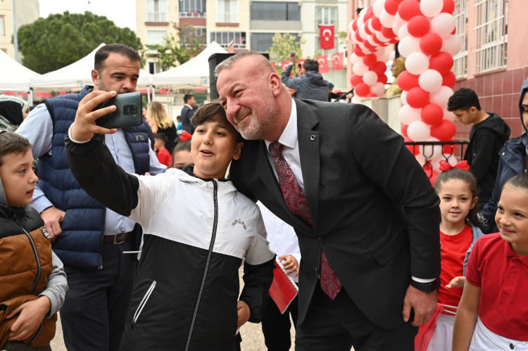 Törenin ardından okul bahçesinde çocuklarla bir araya gelen Karabatı, öğrenciler tarafından adeta sevgi seline tutuldu. “Başkanım seni çok seviyoruz” sözleriyle Başkan Karabatı’nın etrafını saran çocuklar, sarılarak duygularını dile getirdi. Başkan Karabatı ise hiçbir çocuğun fotoğraf çektirme isteğini geri çevirmedi, tek tek ilgilenerek bol bol hatıra fotoğrafı çektirdi.