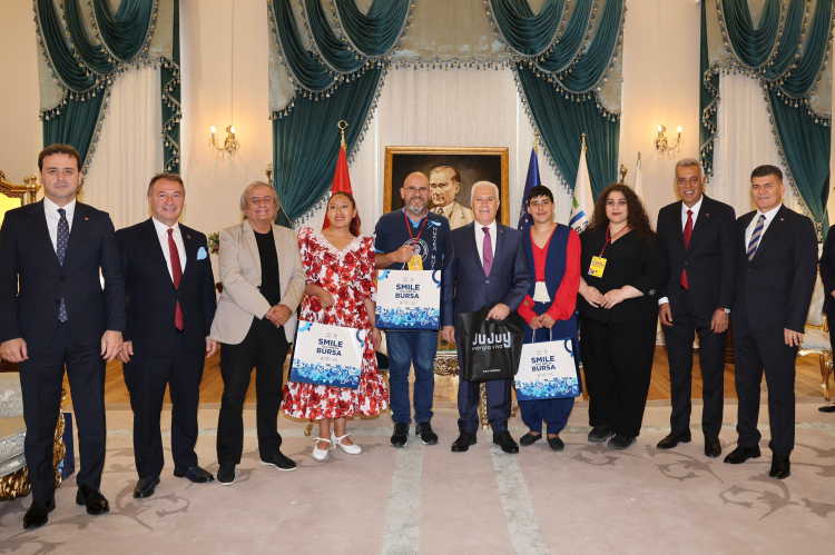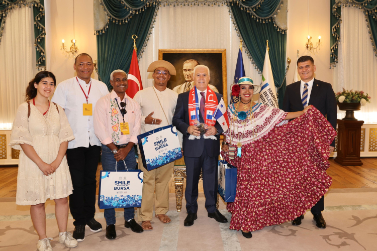 Bursa Büyükşehir Belediyesi adına Bursa Kültür Sanat ve Turizm Vakfı (BKSTV) tarafından düzenlenen 37. Uluslararası Altın Karagöz Halk Dansları Yarışması'na katılan ülkelerin temsilcileri ve yarışmanın jüri üyeleri, Bursa Büyükşehir Belediye Başkanı Mustafa Bozbey’i Tarihi Belediye Binası’nda ziyaret etti. Arjantin, Bulgaristan, Çin, Güney Kore, Gürcistan, İspanya, Kazakistan, Kuzey Kıbrıs Türk Cumhuriyeti, Kolombiya, Kuzey Makedonya, Meksika, Mısır, Panama, Porto Riko, Rusya, Yunanistan’dan gelen ekiplerin yanı sıra 25 yerel halk dansları topluluğunun temsilcileri de ziyarette yer aldı.