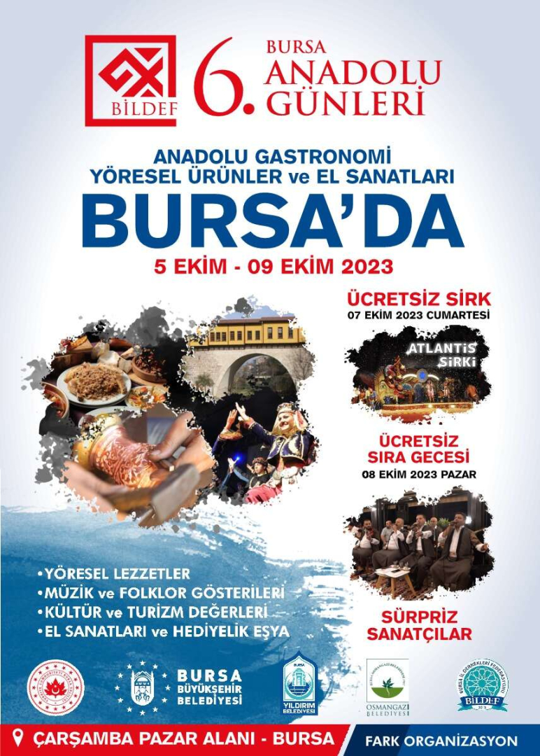 Bursa İl Dernekleri Federasyonu (BİLDEF) tarafından bu yıl 6.’sı düzenlenecek olan Anadolu Günleri Fuarı, 5-9 Ekim tarihleri arasında Osmangazi Çarşamba Pazarı alanında gerçekleştirilecek.