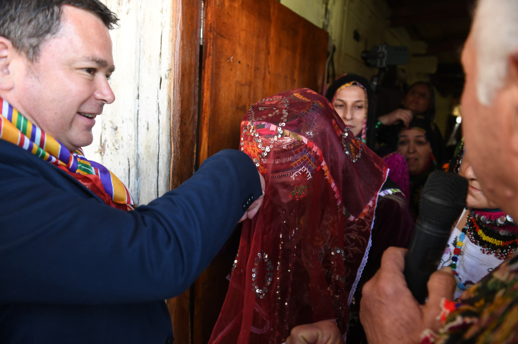 Köy meydanında düzenlenen törende, gelin ve damadın nikahlarını kıyan Başkan Aydın, çifte mutluluklar dilerken, nikah cüzdanını geline teslim etti.