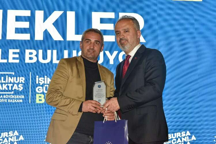 Bursa’ya ve Büyükşehir Belediyesi’ne yıllarca emek veren tüm çalışanlara hizmetlerinden dolayı teşekkür eden Büyükşehir Belediye Başkanı Alinur Aktaş, Bursa’da ortaya çıkan tüm güzel hizmetlerde Büyükşehir Belediyesi ve iştiraklere çalışanların emeği ve katkısı bulunduğunu söyledi. On binlerce üyesi bulunan büyük bir aile olduklarını belirten Başkan Aktaş, “Sel oldu, siz koştunuz. Yangın oldu, siz koştunuz. Sosyal yardıma muhtaç bir aile oldu. yine siz koştunuz. Hep beraber koştuk. Allah hepinizden razı olsun. Bugün de artık o verdiğiniz emeğin, mücadelenin bir sonunu, nihayetini ve kıvancını yaşıyorsunuz. Bursa Büyükşehir Belediyesi çok büyük bir aile. Sekiz iştirakimiz, BUSKİ ve Büyükşehir Belediyesi olmak üzere on tüzel kişilik, 13 bin civarı çalışanımız var. Her birinize teşekkür ediyorum. Bundan sonraki hayatınızda başarılar ve mutluluklar diliyorum. Sizlerle yol arkadaşlığı yapmak, bu şehre hizmet etmek, bu kutlu şehre, bu maneviyatı şehre çok hizmet etmek büyük bir mutluluk. Ailelerinizle, çocuklarınızla beraber sağlıklı, hayırlı, uzun ömürler temenni ediyorum” diye konuştu.