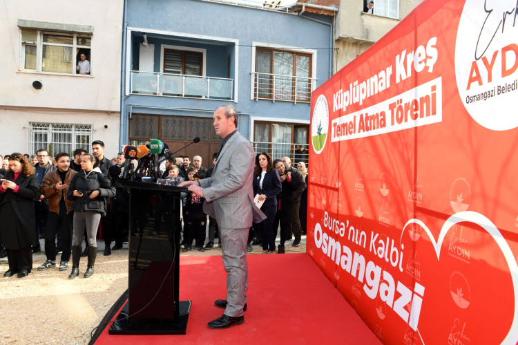 Osmangazi ilçesini hizmetlerle donatan Osmangazi Belediye Başkanı Erkan Aydın, göreve geldiği 8 ayda 3’üncü kreşin temelini attı. Küplüpınar Mahallesi'nde hayırsever vatandaşların desteğiyle temeli atılan kreş birkaç ayda içinde bitirilerek hizmete açılacak.