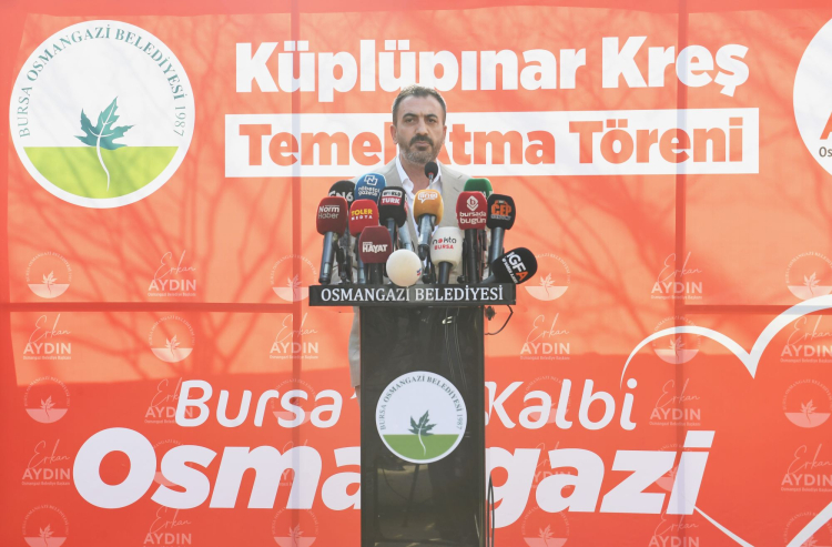Osmangazi ve Küplüpınar Mahallesi sakinlerinin yoğun katılım gösterdiği Kreşin temel atma töreninde konuşan Osmangazi Belediye Başkanı Erkan Aydın, “8 ay gibi bir sürede 3’üncü kreş temelimizi atıyoruz. İlk temeli Mayıs ayında atmıştık. Ekim ayında da açılışını yaptık, çocuklarımız açılışını yaptığımız Ayça Azak Kreşinde eğitim almaya başladılar. Geçtiğimiz ay Yunuseli Mahallesi'nde bir kreş temeli daha attık. Bugün Küplüpınar Mahallesi'nde kreş temeli atıyoruz. Birkaç hafta sonra Küçükbalıklı Mahallesi'nde bir kreş temeli daha atacağız. Sayın genel başkanımızın geçen hafta Ankara’da söylediği şuanda Türkiye çapında 652 olan kreş sayımızı bir yıl içinde bin hedefine hep birlikte ulaştıracağız. Günümüz koşullarında annelerin iş hayatına katılabilmesi için çocuklarında kaliteli ve nitelikli eğitim hayatında olması gerekiyor. Kreşlerde güvenilir, sağlıklı ve hijyen ortamlarında çocuklarını aileler güvenle emanet edebilmeleri gerekiyor. Hayırsever iş insanları, Osman ve Ali beyler sağolsunlar rahmetli babalarının adlarını yaşatacakları güzel bir esere imza atıyorlar. Kısa sürede buranın inşaatını bitirip birkaç ay sonra burada çocuklarımızı eğitime kabul edeceğiz. Çirişhanespor Kulübünün Mayıs ayında temelini atmıştık. Onunda Ekim ayında açılışını yaptık. Hizmetlerimiz devam edecek. Biz yerel belediyeciliği sosyal demokrat belediyecilik olarak dezavantajlı guruplara hizmet ulaştırma olarak görüyoruz. Her konuda destek olmaya devam edeceğiz. Bir kez daha Osman ve Ali Özelif iş insanlarına bu değerli yatırımı yaptıkları için teşekkür ediyorum” dedi.