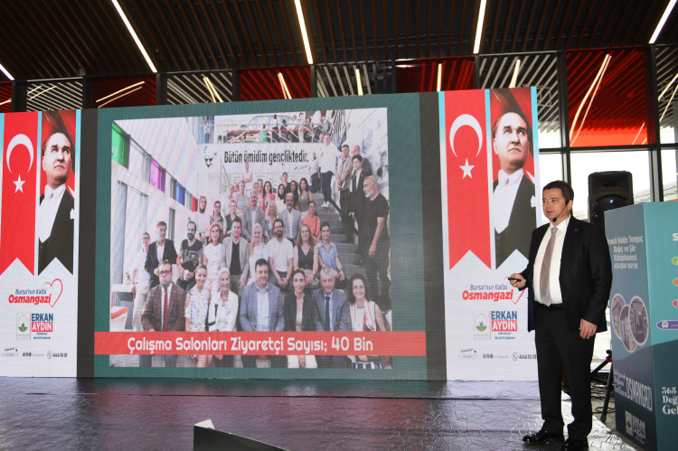 Osmangazi’de geçen bir yılın anlatıldığı kısa filmin ardından sunumuna başlayan Başkan Erkan Aydın, “Zamanın ne kadar hızlı geçtiğinin farkındayız. 8 yıllık milletvekilliği dönemim sanki 8 gün gibi geçti. Osmangazi Belediye Başkanlığı görevindeki bir yılım da sanki bir gün gibi geçti. Zamanın çok hızlı geçtiğinin bilinciyle, seçilir seçilmez çalışmalara başladık. Bursa’nın kalbi Osmangazi dedik ve bu sözümüze ve ilçemize yakışır hizmetler yaptık. Önümüzdeki 4 yılda da aynı hızla çalışmalarımıza devam edeceğiz” dedi.