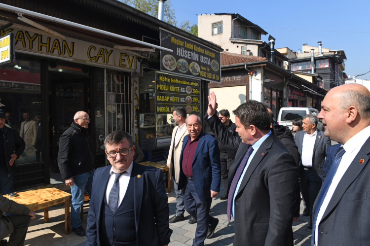 Güzel davetleri için Kayıhan Çarşısı esnafına teşekkür eden Osmangazi Belediye Başkanı Erkan Aydın, “Bursa’mızın gastronomi duraklarının başında geliyor tarihi Kayıhan Çarşısı. Çocukluğumuzun hatıralarını barındıran, sadece lezzetiyle değil, samimiyetiyle de gönüllerimizde yer etmiş bir yer burası. Kayıhan, geçmişin izlerini bugünün sıcaklığıyla birleştirerek Bursa mutfağının yaşayan hafızası olmaya devam ediyor. Bizler de bu kıymetli alanın hem esnafımız hem de hemşehrilerimiz için en verimli şekilde turizme kazandırılması adına çalışıyoruz. Bu sabah Kayıhan Mahalle Muhtarımız Ali Osman Işık ve esnafımızla bir araya geldik. Bu alanın hak ettiği şekilde turizme kazandırılması için fikir alışverişinde bulunduk. Geçmişin izlerini bugünün sıcaklığıyla birleştirerek Bursa’mızın gastronomi kenti olmasını sağlayacağız. Kayıhan Mahalle Muhtarı Ali Osman Işık’a ve esnafımıza misafirperverlikleri için teşekkür ediyorum” diye konuştu.