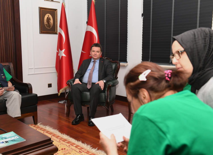 Osmangazi Belediye Başkanı Erkan Aydın, 10-16 Mayıs Dünya Engelliler Haftası kapsamında OBAM üyeleri Nihan Kardaşko, Fatih Diden, Melike Kırço, Eslem Mert, Kadriye Dokumacı ve Ertan Ataş’ı makamında ağırladı. OBAM sakinleri ile yakından ilgilenen ve ziyaret süresince neşelerine, enerjilerine ve mutluluklarına ortak olan Başkan Aydın, engelli bireylerin toplumsal hayata tam katılımı için yürütülen çalışmaların önemine vurgu yaptı.