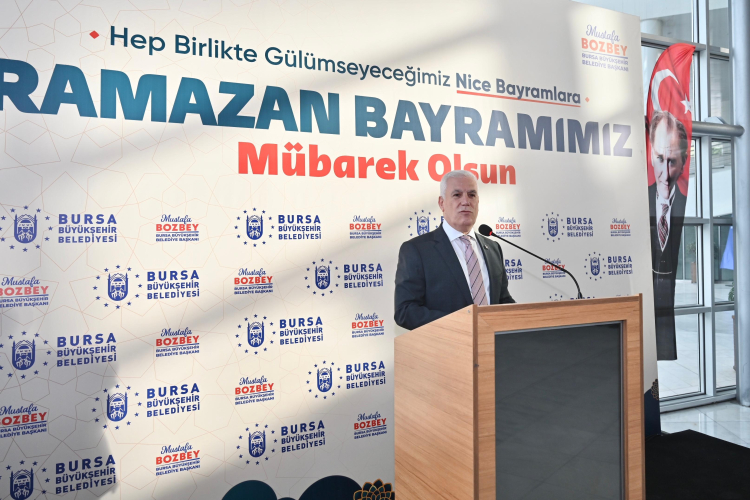 Bursa Büyükşehir Belediye Başkanı Mustafa Bozbey, Ramazan Bayramı öncesinde Büyükşehir Belediyesi çalışanlarıyla bayramlaşma töreninde buluştu. Büyükşehir Belediye Binası tören alanındaki programda konuşan Başkan Mustafa Bozbey, herkesin sağlıklı, mutlu ve güzel bir bayram geçirmesini diledi. Bugüne kadar yapılan hizmetlere katkı sunan tüm çalışanlara teşekkür eden Başkan Bozbey, “Biz bir aileyiz. Yönetiminden idari mekanizmasına kadar bütün arkadaşlarımız bu kurumun çalışanı ve temsilcisidir. Birbirimizle proje paylaşarak, ortak akılla o projenin doğruluğunu sorgulayarak ve uygulayarak bu kente hizmet edeceğiz. Her bir çalışma arkadaşım benim için kıymetlidir. Nice bayramlarda hep beraber güzellikler içerisinde buluşmayı diliyorum. Ramazan Bayramımız mübarek olsun” dedi.
