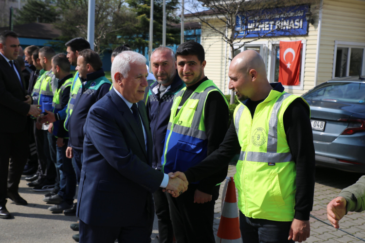 Bursa Büyükşehir Belediye Başkanı Mustafa Bozbey, Ramazan Bayramı’nda görevinin başındaki Büyükşehir Belediyesi çalışanlarını ziyaret etti. Büyükşehir Belediyesi çalışanlarından bilgi alan Başkan Bozbey, telsizle anons geçerek sahada mesaisini sürdüren çalışanların bayramını tebrik etti.