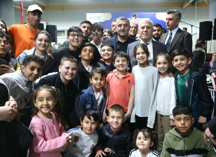 Bursa Büyükşehir Belediye Başkanı Mustafa Bozbey, Yunuseli Mahallesi’nde düzenlenen iftar programında gençlere halı saha müjdesi verdi.
