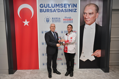 Bursa Büyükşehir Belediye Başkanı Mustafa Bozbey, 16. Dünya Briç Şampiyonası'nda dünya şampiyonu olan Türkiye Kadın Milli Takımı’nın Bursa Briç Spor Kulübü oyuncusu Dilek Yavaş’ı makamında ağırlayarak tebrik etti.