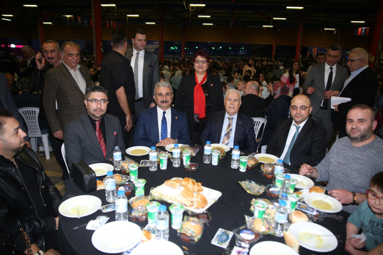 Bursa Büyükşehir Belediyesi tarafından 17 ilçede düzenlenen iftar programları Osmangazi ilçesi Hamitler Mahallesi’nde devam etti. Hamitler Kapalı Pazar Alanı’nda yaklaşık 4500 kişinin katılımıyla yapılan programa, Büyükşehir Belediye Başkanı Mustafa Bozbey, CHP İl Başkanı Nihat Yeşiltaş, Büyükşehir Belediyesi bürokratları, muhtarlar, belediye meclis üyeleri ve vatandaşlar katıldı. İftar öncesi Karagöz gölge oyunu gösterisi çocuklara keyifli anlar yaşatırken, akşam ezanıyla birlikte vatandaşlar hep birlikte oruçlarını açtı.