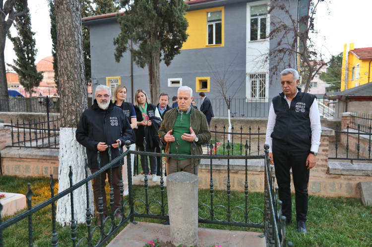 Bursa Büyükşehir Belediye Başkanı Mustafa Bozbey, beraberinde Büyükşehir Belediyesi Genel Sekreter Yardımcısı Mehmet Yıldız, Kent Tarihi ve Tanıtımı Dairesi Başkanı Güney Özkılınç ve belediye yöneticileriyle birlikte İznik Mahmud Çelebi Camii’ni ziyaret ederek yapılan çalışmalar hakkında bilgi aldı. Cami içerisinde ve hazire alanında yürütülen çalışmaları yerinde inceleyen Başkan Bozbey, çevre düzenlemesi, ışıklandırması ve mezar bakımları tamamlanan bölgenin İznik’e değer kattığını söyledi. Kentin tarihi mirasına sahip çıktıklarını belirten Başkan Bozbey, “İznik Mahmud Çelebi Camii Haziresi’nin bakım ve onarım çalışmalarını tamamlayarak kent tarihine önemli bir katkı sunduk. Osmanlı dönemi mezar taşlarının özgün süslemeleriyle dikkat çeken bu hazire, Çandarlı ailesi başta olmak üzere İznik’in önde gelen isimlerinin kabirlerine ev sahipliği yapıyor. Yapılan düzenlemelerle, bu kıymetli mirası gelecek nesillere aktarmayı amaçlıyoruz. İznik’in mirasına sahip çıkıyoruz” dedi.
