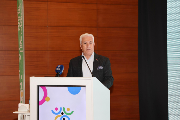 Bursa Büyükşehir Belediye Başkanı Mustafa Bozbey, eşi Seden Bozbey ile birlikte Uluslararası Spor Festivali kapsamında 8 farklı ülkenin 9 kardeş kentinden gelen genç sporcularla bir araya geldi.
