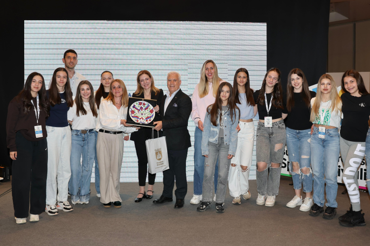 Konuşmanın ardından Başkan Mustafa Bozbey ve eşi Seden Bozbey tarafından genç sporculara ve antrenörlerine hediye takdim edildi.