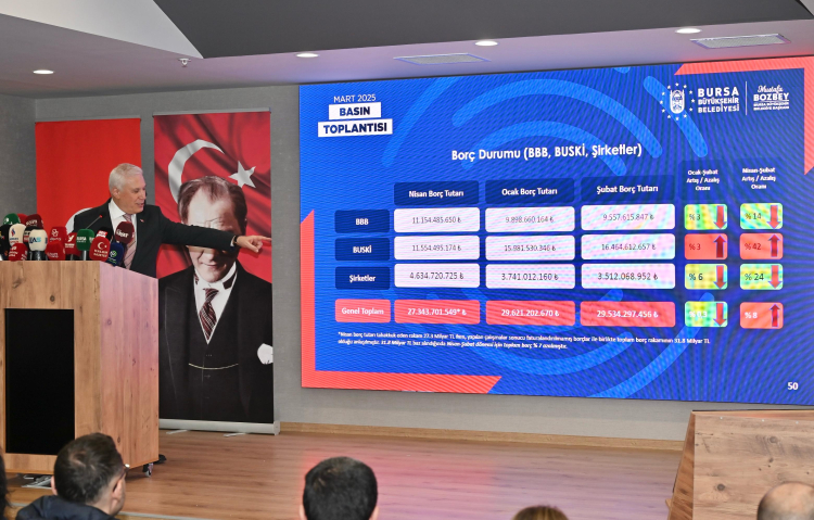 Bursa Büyükşehir Belediye Başkanı Mustafa Bozbey, Mart Ayı Değerlendirme Toplantısı’nda BUSKİ ve kentin su yönetimi konusunda önemli açıklamalarda bulundu. Büyükşehir, BUSKİ ve diğer şirketlerde toplam borcu 2 milyar 300 milyon TL civarında azalttıklarını anlatan Başkan Bozbey, buna karşın borçlarının yüzde 75’i dış kaynaklı olan BUSKİ’de kurdaki yükselişe bağlı olarak artış yaşandığını açıkladı.