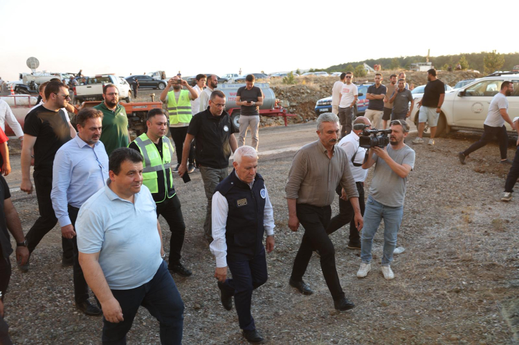 Bursa Büyükşehir Belediyesi Başkanı Mustafa Bozbey, Orhaneli-Harmancık ilçeleri arasında devam eden yangının söndürülmesi için sürdürülen çalışmaları yerinde inceledi. Harmancık’taki yangının 6 farklı bölgede bir anda başlamış olmasının düşündürücü olduğunu açıklayan Başkan Bozbey, yangın tehlikesine karşı 5-6 mahallenin tamamen boşaltıldığını ifade etti.