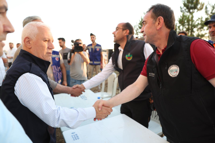 Gürsu bölgesindeki yangınla mücadele çalışmalarının da aralıksız sürdüğünü anlatan Başkan Bozbey, bölgeden üzücü bir haber aldıklarını da dile getirdi. Yangın söndürme çalışmalarına katılmak için şehir dışından gelen bir tankerin şarampole yuvarlanması sonucu iki kişinin vefat ettiğini, iki kişinin de yaralandığını söyleyen Başkan Bozbey, “Ölenlere Allah’tan rahmet diliyorum. Mekanları cennet olsun. Yaralılara da şifalar diliyorum. Yangının söndürülmesi için çalışmalara katılan her bir vatandaşımıza teşekkür ediyorum. Bursa’da tüm halkımız dayanışmanın, bütünleşmenin örneğini bu yangında da ortaya koydu. İtfaiye teşkilatımız ve AKOM yapılanmamız AFAD ile birlikte Valiliğimizin koordinasyonunda sahada mücadele ediyor. Herkes görev ve sorumluluğunu fazlasıyla yerine getiriyor. Yanan alanları soğutma çalışmalarının ardından Valiliğimiz öncülüğünde yeşile dönüştürme projesini başlatacağız. Bizler bir yerine 5 ağaç dikerek destek olacağız” dedi.