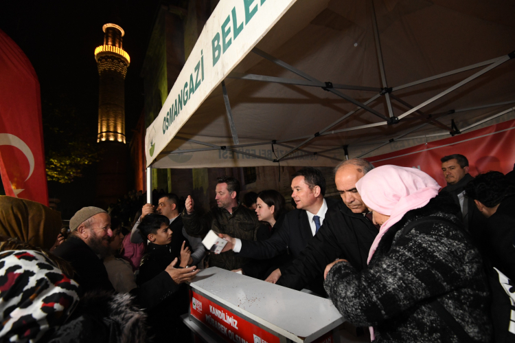Osmangazi Belediye Başkanı Erkan Aydın, Ulucami’de kandil simidi ikramında bulunarak Bursalıların ve tüm İslam aleminin Regaip Kandilini kutladı. Başkan Aydın, ‘Tüm Bursa ve Osmangazililerin Regaip Kandilini tebrik ediyorum’ ifadelerini kullandı.