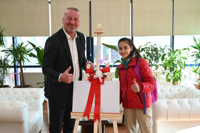 Karacabey Şehit Serkan Şahin Ortaokulu 7. sınıf öğrencisi Hazal Emergen, 23 Nisan Ulusal Egemenlik ve Çocuk Bayramı kapsamında düzenlenen resim yarışmasında ilçe birincisi olarak önemli bir başarıya imza attı. Hazal’ın ödüllü eseri, şimdi Bursa finallerinde Karacabey’i temsil edecek. Başarılı öğrenciyi makamında ağırlayan Belediye Başkanı Fatih Karabatı, Hazal’a sanatsal çalışmalarında destek olması amacıyla bir resim şövalesi hediye etti ve genç yeteneğin ilerleyen süreçte de büyük başarılara imza atacağına inandığını vurguladı.