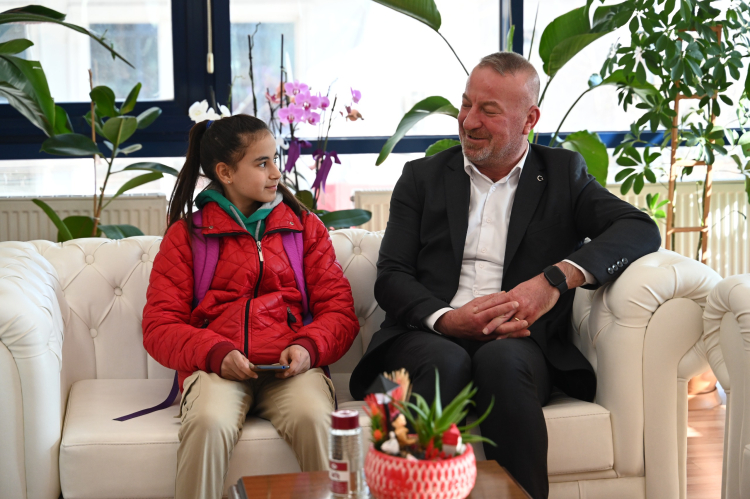 Şehit Serkan Şahin Ortaokulu’nun 7. sınıf öğrencisi Hazal Emergen, 23 Nisan Ulusal Egemenlik ve Çocuk Bayramı kapsamında düzenlenen resim yarışmasında ilçe birinciliğini kazandı. Başarılı öğrencinin gururu, ilçede büyük bir sevinçle karşılandı. Belediye Başkanı Fatih Karabatı, Hazal Emergen’i makamında ağırlayarak bu anlamlı başarısından dolayı kendisini tebrik etti. Başarılı öğrenciyi makamında misafir eden Belediye Başkanı Fatih Karabatı, Hazal’a bu anlamlı başarısından dolayı bir resim şövalesi hediye etti.