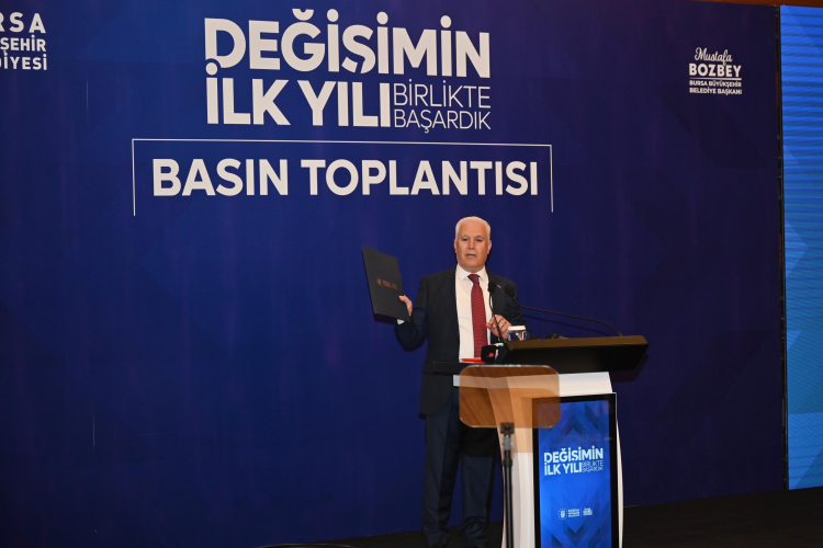 Bursa Büyükşehir Belediye Başkanı Mustafa Bozbey, 1. Yıl Değerlendirme Toplantısı’nda basın mensuplarıyla bir araya geldi. Attıkları her adımda şeffaf olduklarını, kamu kaynaklarını Bursalılar için kullandıklarını söyleyen Başkan Mustafa Bozbey, “Ne yaptıysak, Bursamız için yaptık ve yapmaya da devam edeceğiz. Amacımız, Bursa’yı örnek ve lider bir kent yapmak, öncü kılmak, bir dünya kenti olarak hak ettiği yere taşımaktır” dedi.