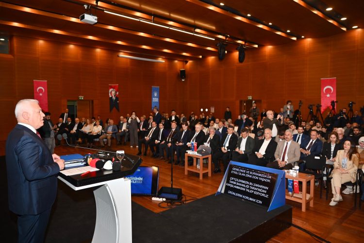 Konuşmasına Silivri’de hapsedilmiş olan tüm belediye başkanlarını ve CHP’nin Cumhurbaşkanı adayı Ekrem İmamoğlu’nu selamlayarak başlayan Büyükşehir Belediye Başkanı Mustafa Bozbey, yakın zamanda yaşanan zirai don sebebiyle zor durumda kalan çiftçilerin zararının Tarım Bakanlığı tarafından karşılanmasını talep etti. Son yaşanan İstanbul merkezli depremlere de değinen Başkan Bozbey, “Tüm vatandaşlarımıza geçmiş olsun dileklerimizi iletiyorum. Bu tür doğal afetler, hepimize bir kez daha afetlere karşı hazırlıklı olmanın hayati önemini hatırlatıyor. Bursa Büyükşehir Belediyesi olarak, olası depremlere karşı kentimizi daha dirençli hale getirmek için tüm gücümüzle çalışıyoruz. Bilimsel veriler ışığında yürüttüğümüz kentsel dönüşüm projeleri, afet yönetimi planlarımız ve risk azaltma stratejilerimizle, Bursamızın geleceğini güvence altına almakta kararlıyız” dedi.