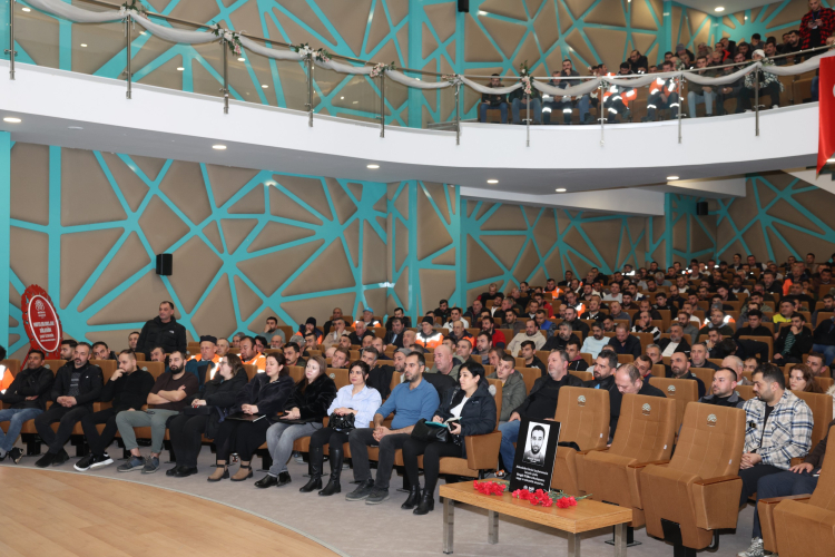 Konuşmasında iş sağlığı ve güvenliği konusuna da değinen Başkan Şadi Özdemir, “Çalışırken daha çok dikkat edin ve birbirinizi uyarın. Ne olursa olsun en önemli nokta sizin sağlığınız. Kurallara dikkat edin” diye konuştu.