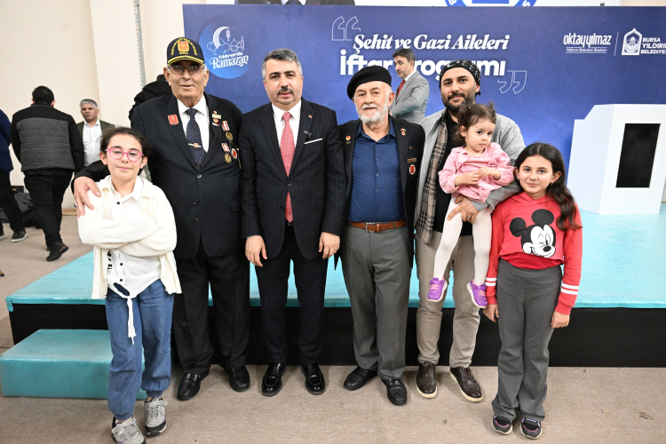 Yıldırım Belediyesi, Ramazan etkinlikleri kapsamında şehit ve gazi yakınlarını iftar sofrasında buluşturdu. Naim Süleymanoğlu Spor Kompleksi’nde düzenlenen programa Yıldırım Belediye Başkanı Oktay Yılmaz, Yıldırım Kaymakamı Metin Esen, AK Parti Yıldırım İlçe Başkanı İrfan Akkaya, MHP İlçe Başkanı Kadir Taşçı, CHP İlçe Başkanı İlhami Gün, BBP İlçe Başkanı Gürkan Sidal, kurum müdürleri, sivil toplum kuruluşu temsilcileri, muhtarlar, şehit ve gazi yakınları katıldı.