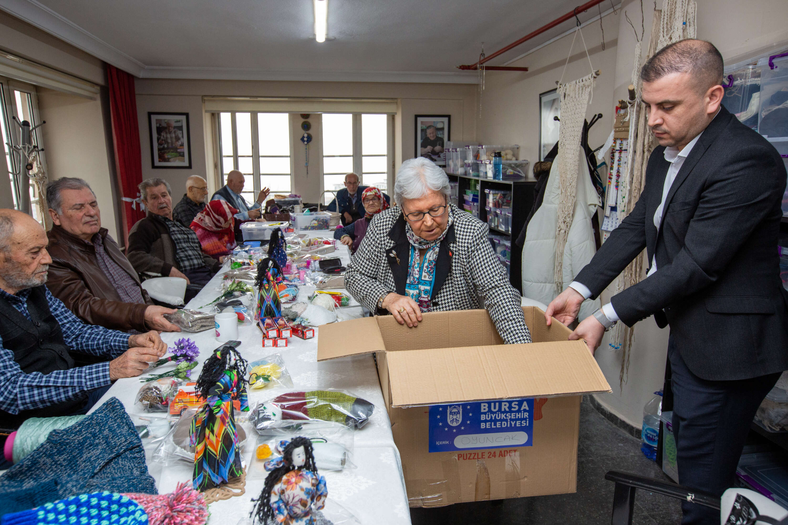 Bursa Büyükşehir Belediyesi Huzurevi sakinleri, hobi atölyelerinde her yıl yapılan kermes için ürettikleri ürünleri, bu kez deprem bölgesindeki çocuklar için hazırladı. Huzurevi sakinleri tarafından hazırlanan atkı, bere, oyuncak, çanta gibi el emeği ürünler depremzede çocuklar için kolilere yerleştirildi.
